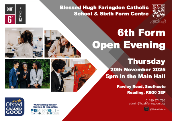Blessed Hugh Faringdon Catholic School is an oversubscribed, high-performing, co-educational school of 1050 students located in West Reading. The school, which includes a thriving Sixth Form, has recently been judged as an outstanding Catholic school by the Catholic school inspectorate (February 2025) and was graded as “Good” once again by Ofsted in 2023 (click below to read the full report).
